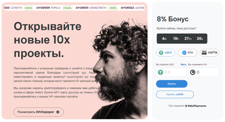 Некоторые перспективные для инвестиций криптовалюты разрабатываются, чтобы помочь пользователям решить какую-либо проблему. Например, Launchpad XYZ – это платформа для тех, кто хочет начать работать в пространстве Web3, но боится начать из-за недостатка знаний. Цена одного $LPX сегодня – $0,0445.